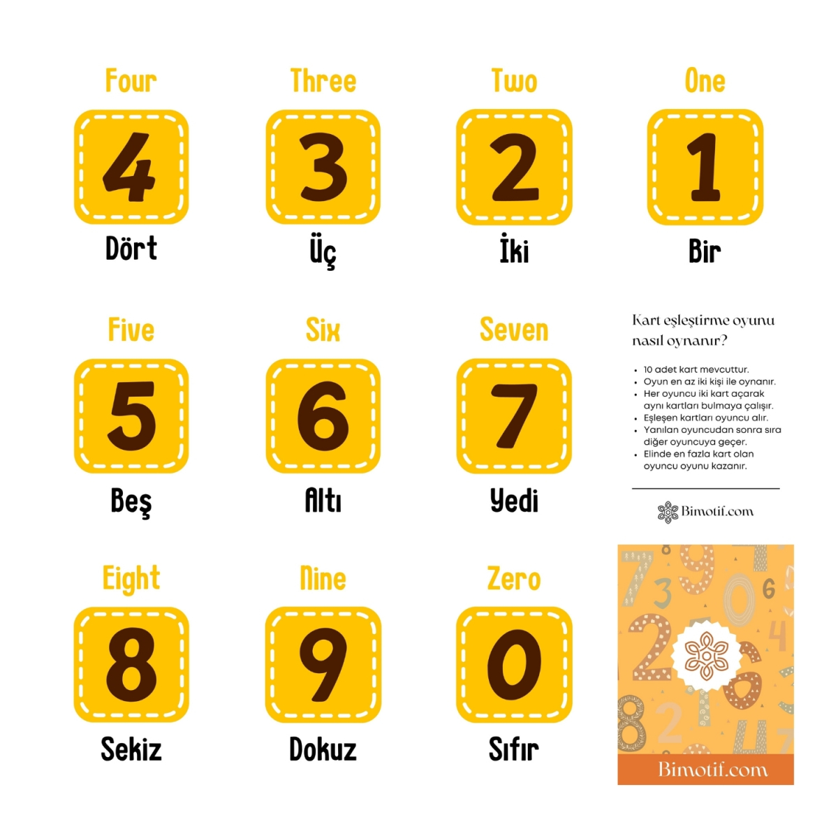 10lu ingilizce eğitici hafıza kartı oyunu, Rakamlar (Bağcıklı Kumaş Keseli)