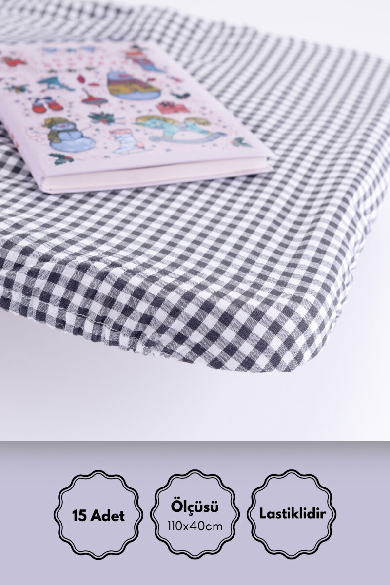 15 adet Lastikli Okul Sıra Örtüsü ve Öğretmen Masa Örtüsü (Pamukludur) / Gri Pötikare