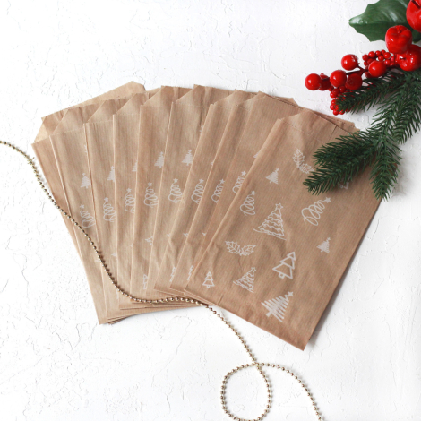 Çam desenli kese kağıdı, kraft-beyaz / 18x30 cm - 10 adet