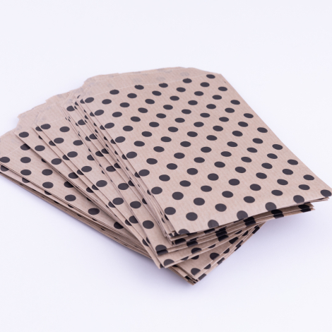 Puantiye desenli kese kağıdı, kraft-siyah / 18x30 cm - 10 adet