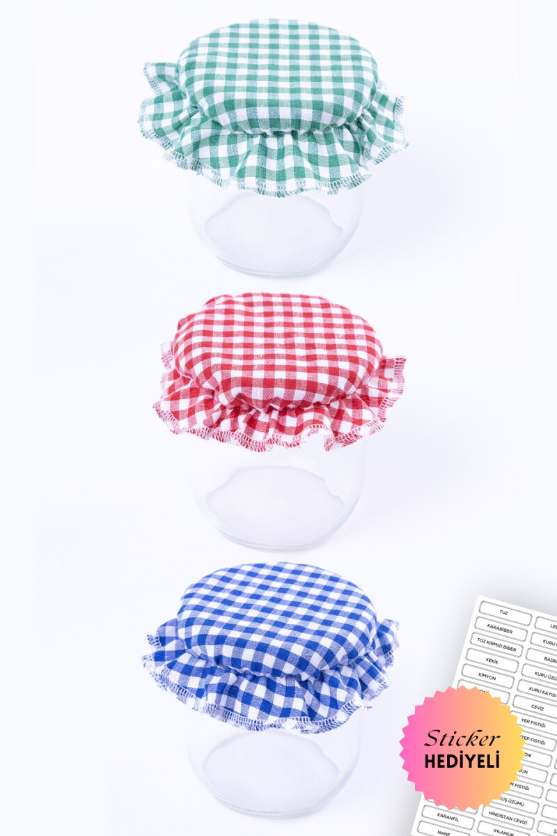 - Göz alıcı tasarımıyla dikkat çeken küçük kareli deseni ve 3 farklı renk seçeneği, mutfak dekorasyonunuza şıklık katar. - 18 adet halinde sunulan bu kavanoz kapak süsü, mutfak düzeninizi kolayca tamamlar ve estetik bir görünüm sağlar. - TR menşeli olmasıyla yerel üretim desteklenmiş ve kaliteli malzemelerden üretilmiştir. - Çok renkli tasarımıyla farklı renk seçenekleri sunarak mutfağınıza canlılık katar. - 0 - 499 ml hacim aralığındaki kavanozlar için ideal boyutlarda üretilmiştir, böylece çeşitli boyutlardaki kavanozlara uyum sağlar. - Pratik kullanım imkanı sunar ve bu sayede ekstra parçalara ihtiyaç duymazsınız.