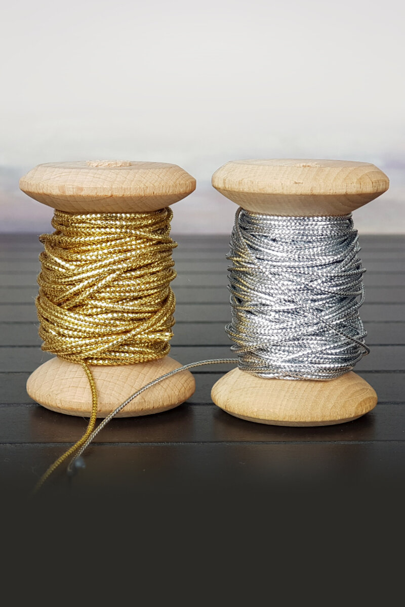 20 şer metre altın ve gümüş dekoratif simli monofil ip seti (20 metre altın, 20 metre gümüş)
