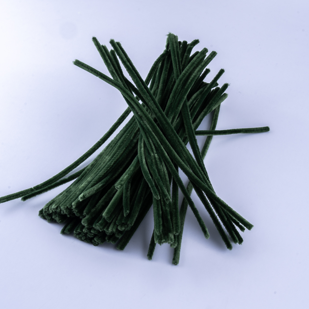 100lü tüylü tel şönil, 30 cm (25'er adet Yeşil, Mor, Lila, Beyaz Şönil, Çiçek Yapımına Uygun)