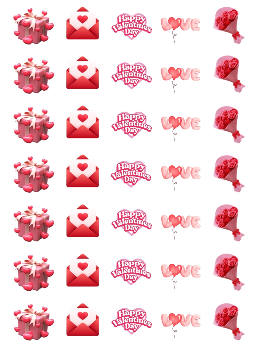 21 parça sevgililer günü hediye paket seti (20 adet 11x20 cm kese kağıdı ve 1 sayfa sticker)
