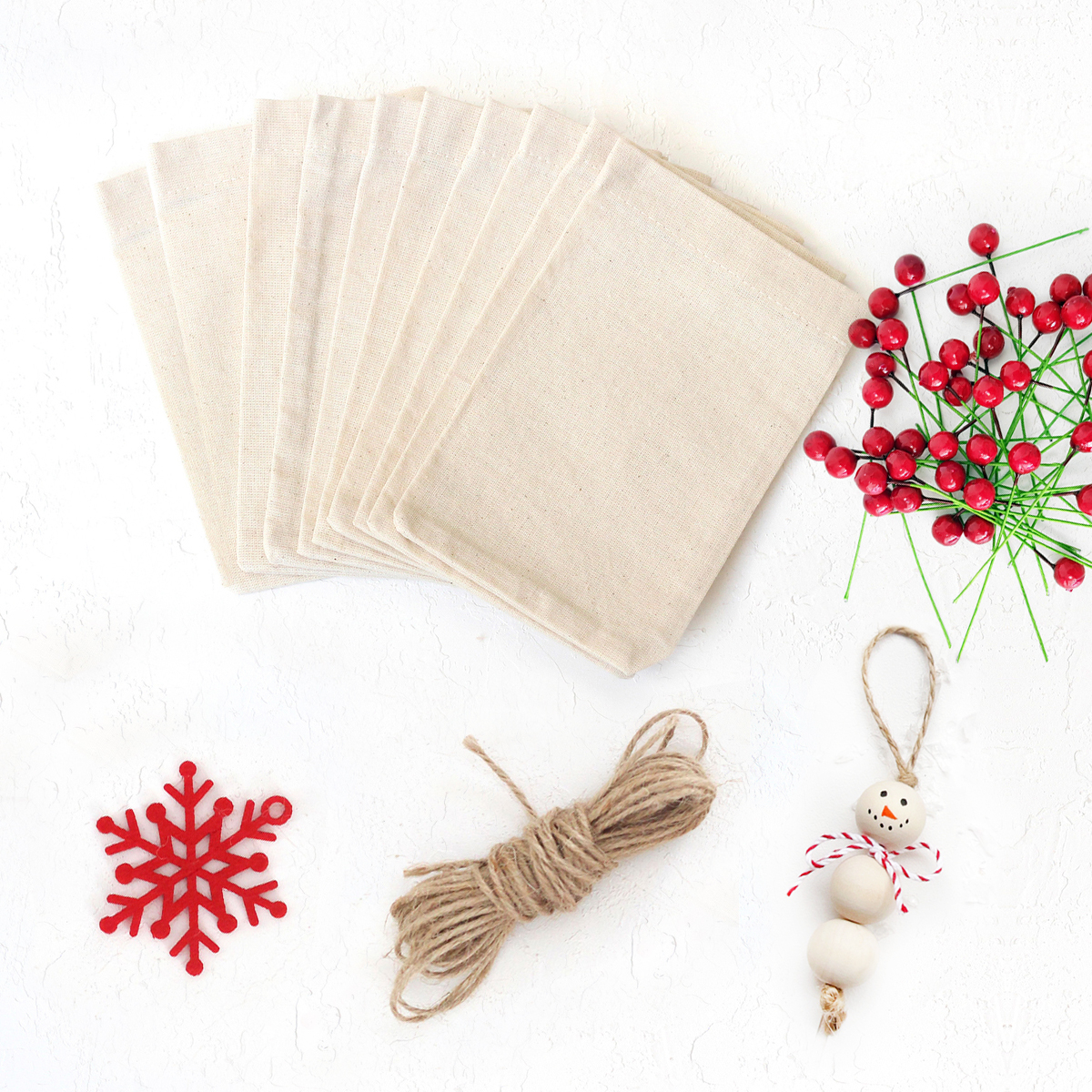 Gelince Haber Ver40 Parça Yılbaşı Hediye Seti (10 Ham Bez Kese, 10 Kardan Adam Süs, 10 Kar Keçe, 10 Telli Berry, 10m Jüt İp).