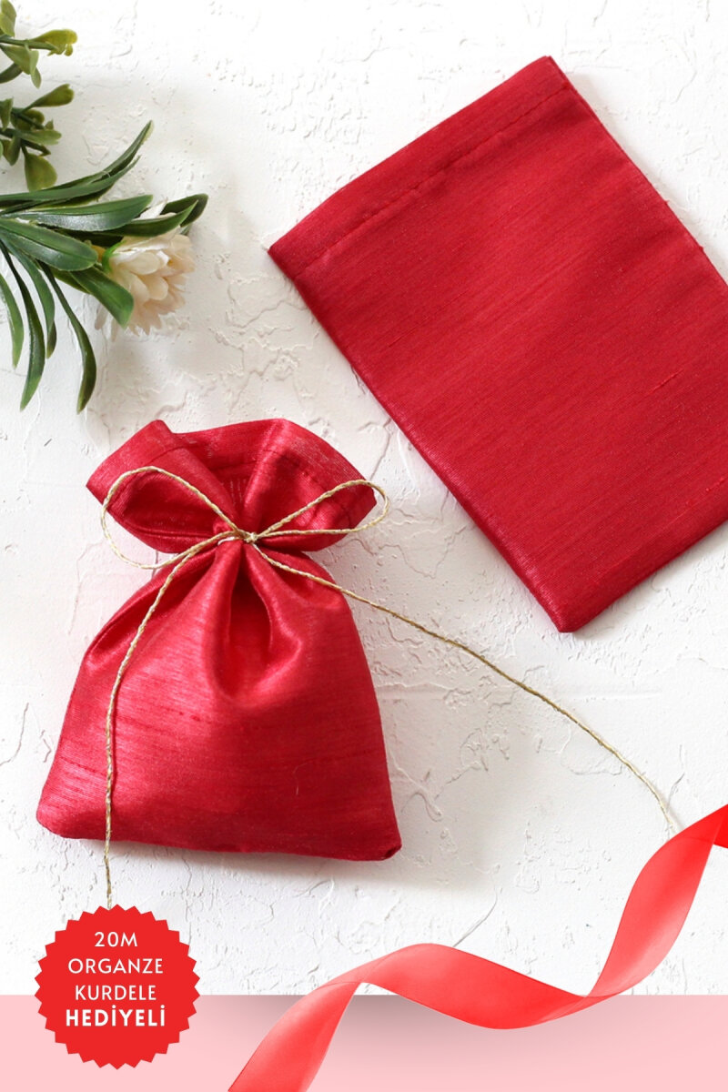 Gelince Haber Ver50 adet osmanlı ipeği kına, söz, nişan hediye kesesi, 10x15 cm, Kırmızı (20m Organze Kurdele Hediye)