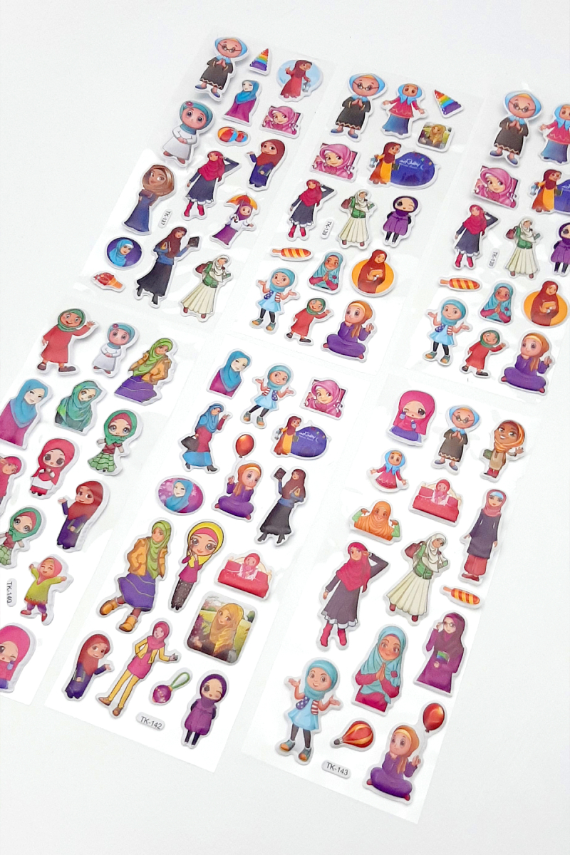 6 adet kabartmalı yapışkan sticker, İslami kız figürleri