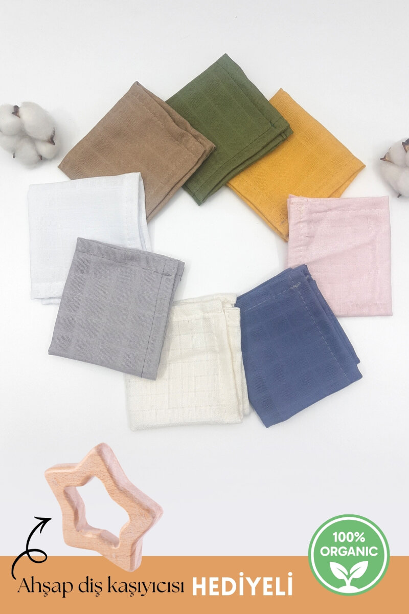 Gelince Haber VerOrganik müslin bezinden üretilmiş, 25x25 cm bebek salya önlüğü seti. Tüm bebekler için kullanılabilir. Fiyat 8 adet ürün içindir. 1 adet ahşap diş kaşıyıcı ücretsiz olarak hediye gönderilir. Diş kaşıyıcısının modeli stok durumuna göre değişiklik gösterebilir. Ürün %100 organik pamuktur. Bebeğinizi temiz, kuru ve rahat tutmanıza yardımcı olacak emici yakalık özellikle diş çıkarma döneminde kullanım rahatlığı sağlamaktadır. 30 derecede, ağartıcı kullanmadan hassas yıkama yapılması ve düşük ısıda ütülenmesi önerilmektedir. Kuru temizlemeye uygun değildir.