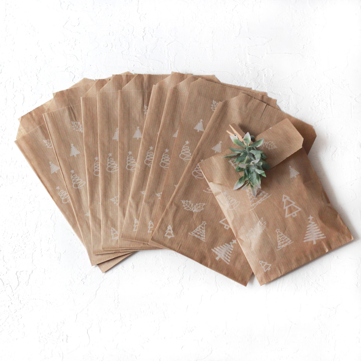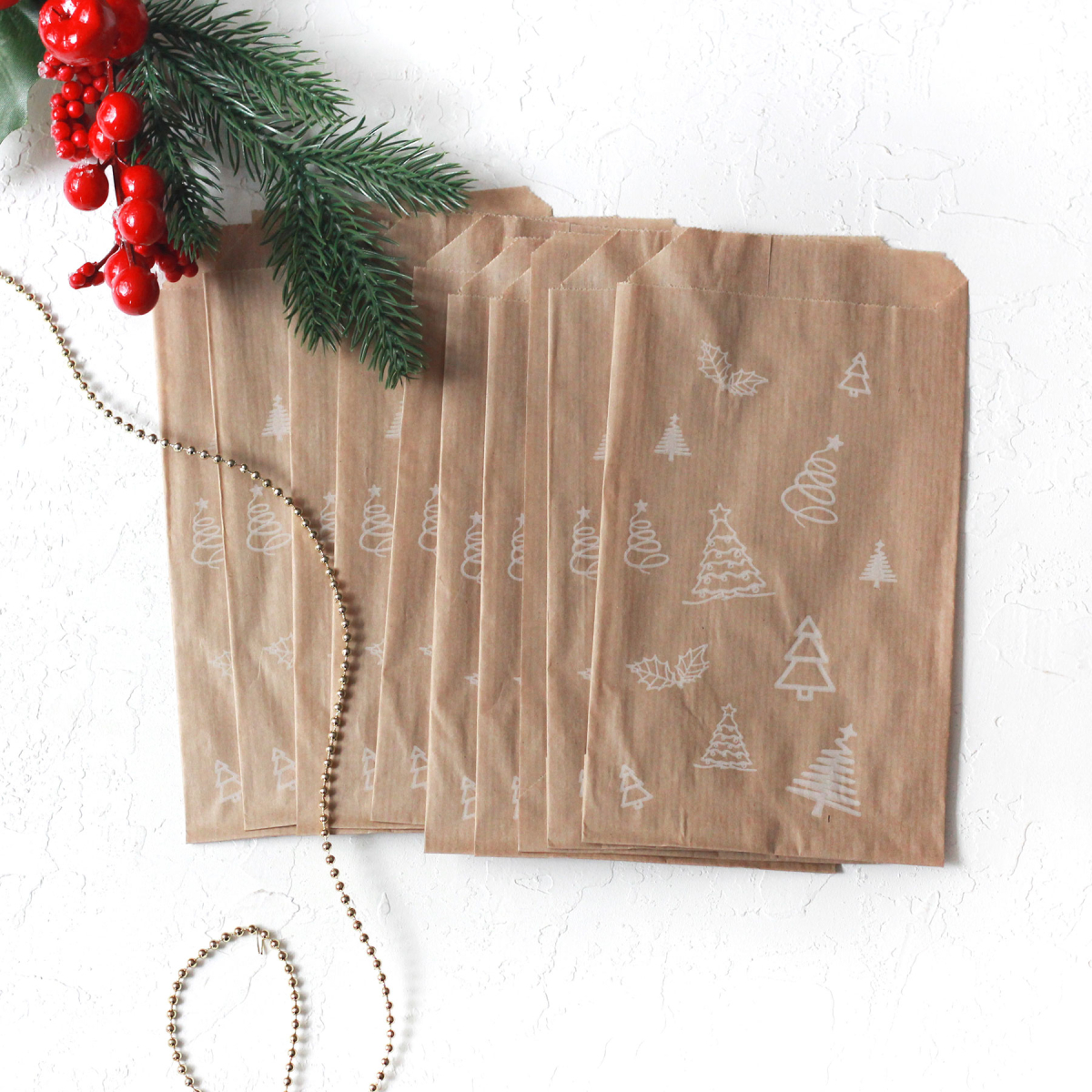 Çam desenli kese kağıdı, kraft-beyaz / 11x20 cm - 5 adet