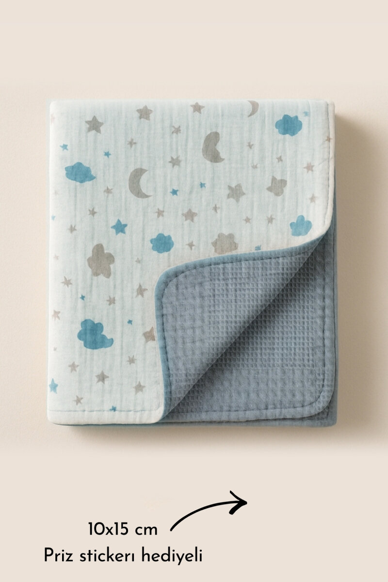 Gelince Haber VerÇift Taraflı Erkek Bebek Battaniyesi, 80x100 cm, Müslin Organik Bebek Örtüsü ve Battaniyesi, Mavi