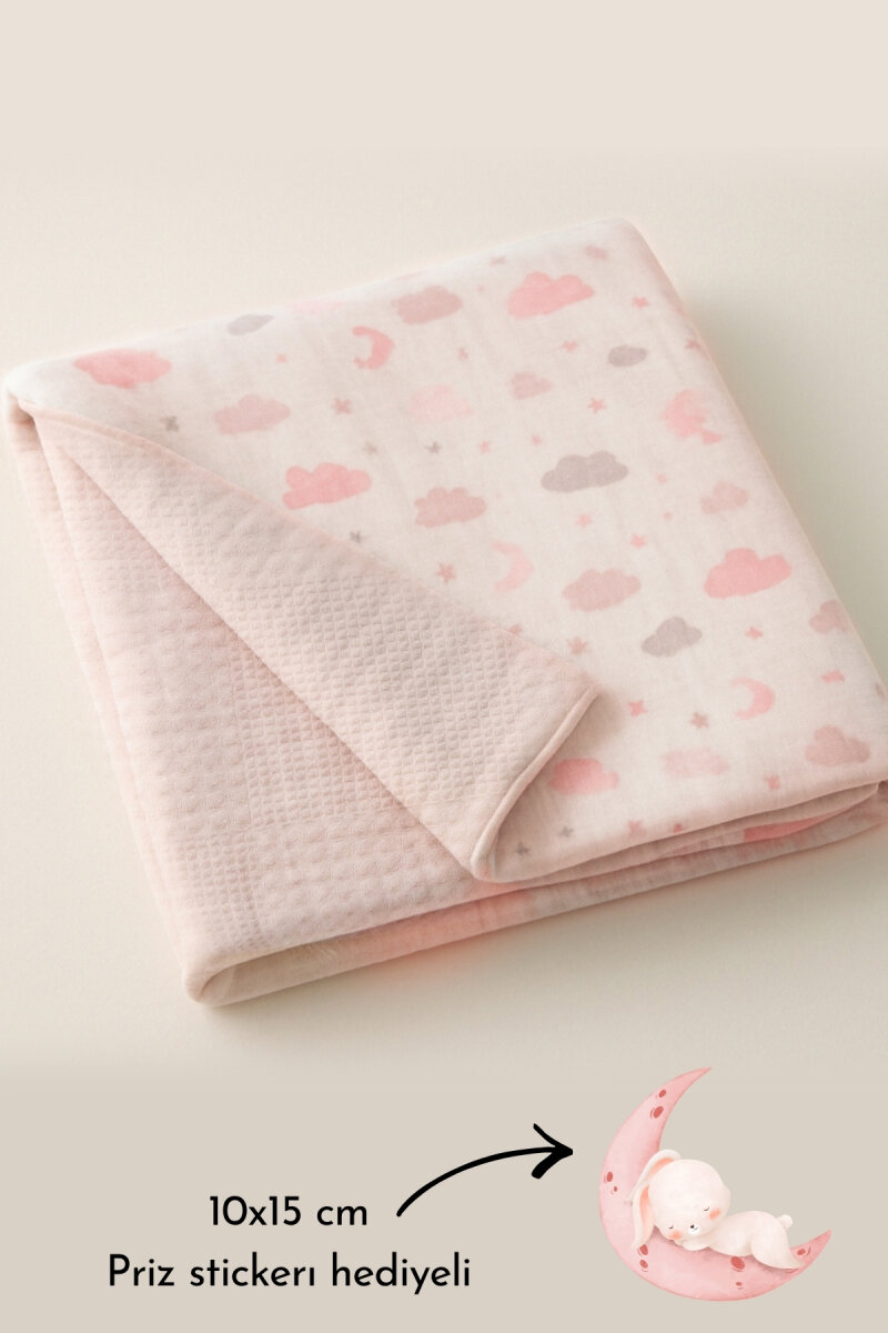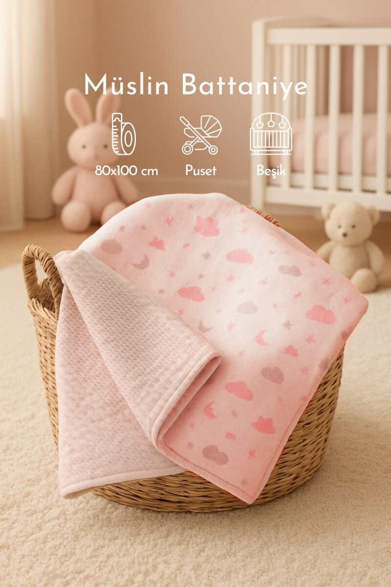 Gelince Haber VerÇift Taraflı Kız Bebek Battaniyesi, 80x100 cm, Müslin Organik Bebek Örtüsü ve Battaniyesi, Pembe