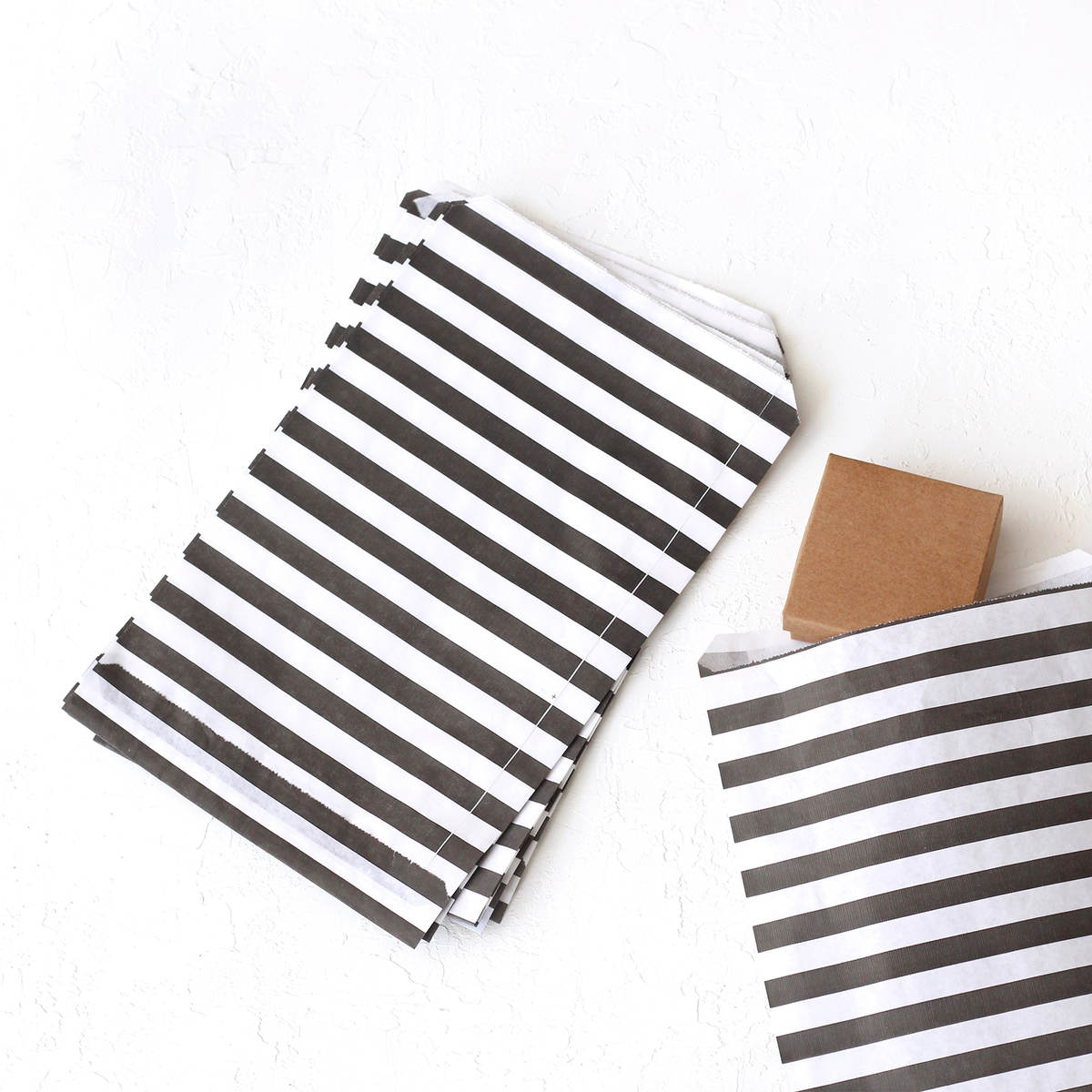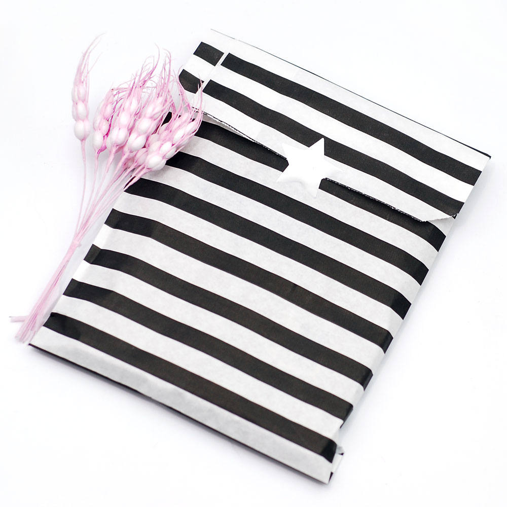 Gelince Haber VerÇizgi desenli kese kağıdı, siyah-beyaz / 18x30 cm - 25 adet