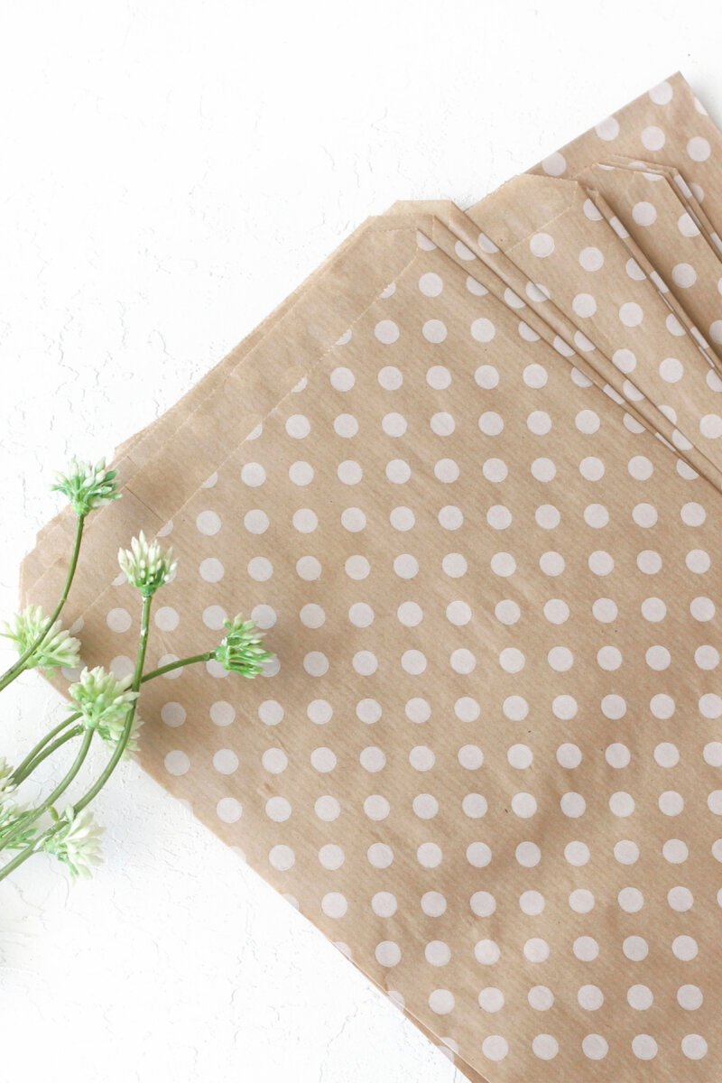 Siparişinizle birlikte, 50 adet 18x30 cm kraft üzeri beyaz puantiye desenli kese kağıdı ve özel tasarım 70 adet stickerdan oluşan set tarafınıza gönderilir.