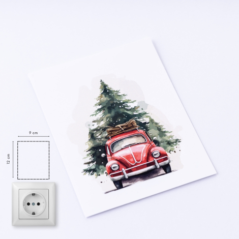 Yılbaşı priz sticker 9x12 cm, Kırmızı Araba / 15 adet
