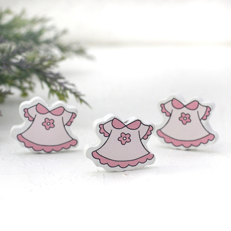 Pembe bebek elbise ahşap apere figür, 3 adet