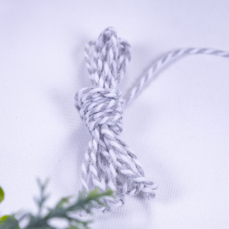 Grey and white two-colour twisted rope for making Martenitsa bracelets. Price is for 10 metres of rope. 2 mm thick. You can use this rope for decorative purposes in Martenitsa bracelet making, decorative accessories, gifts and packaging, baby shower, birthday and similar party organisations.