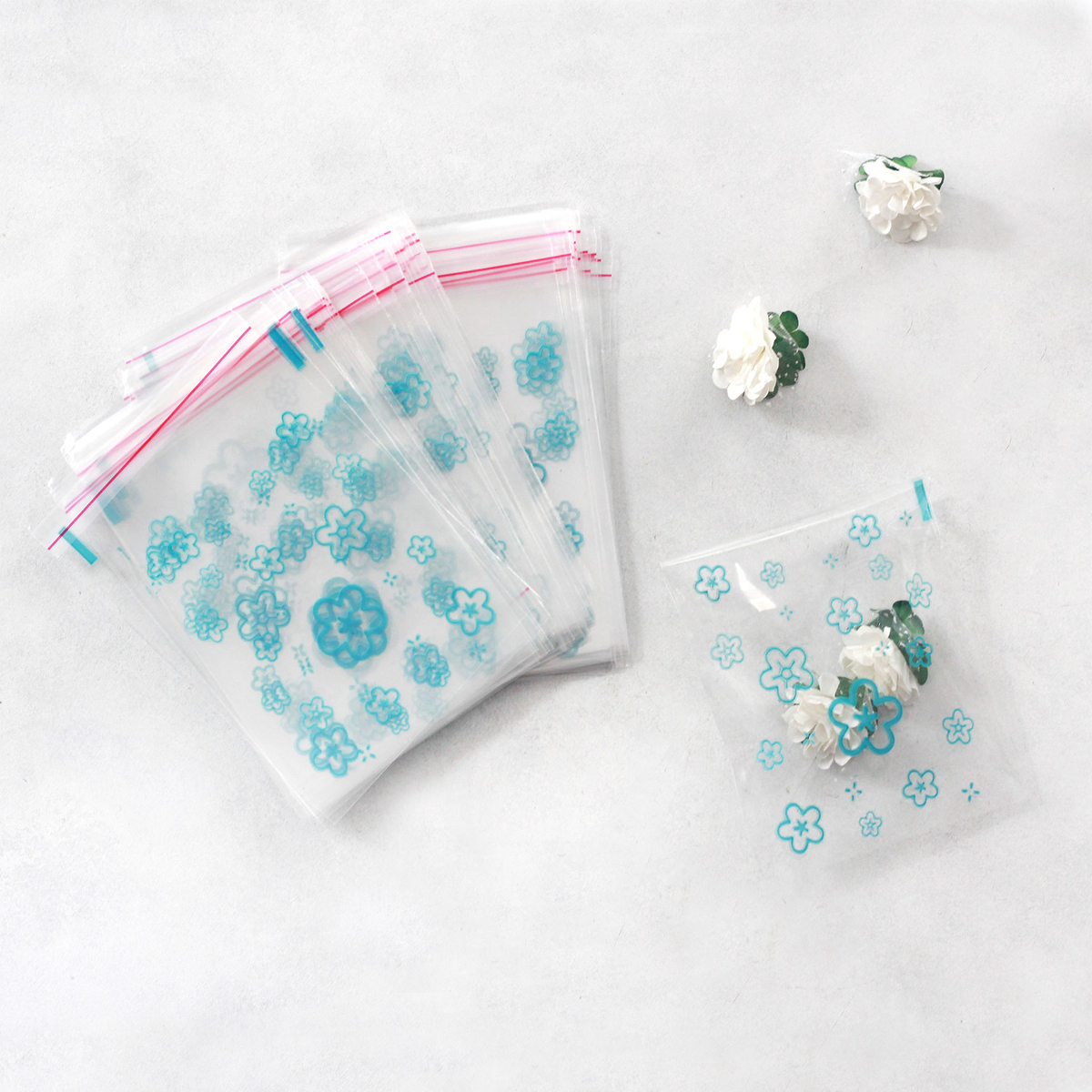Gelince Haber VerMavi çiçek desenli bantlı şeffaf poşet, 10x15 cm / 250 adet