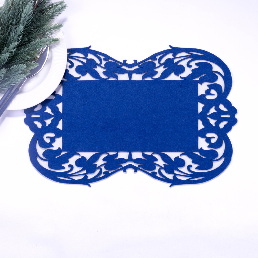 Navy blue felt Placemat, flower - 27x44 cm / 1 piece