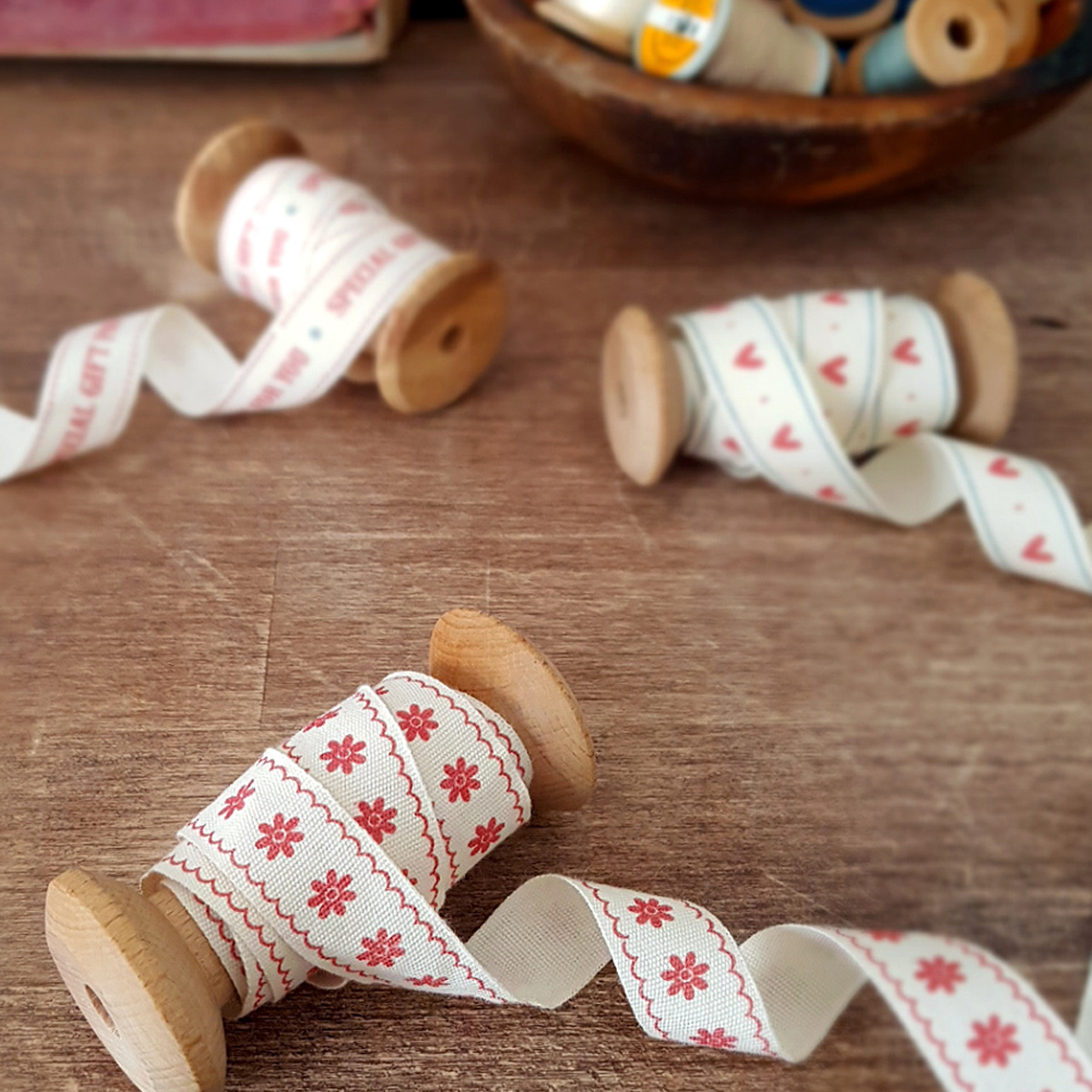 Cotton ribbon, heart, 1.5 cm / 5 metres