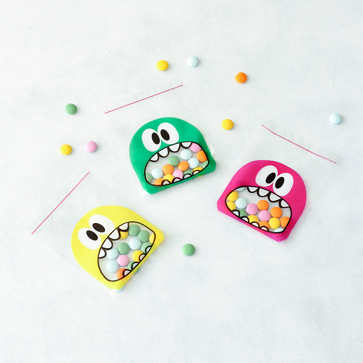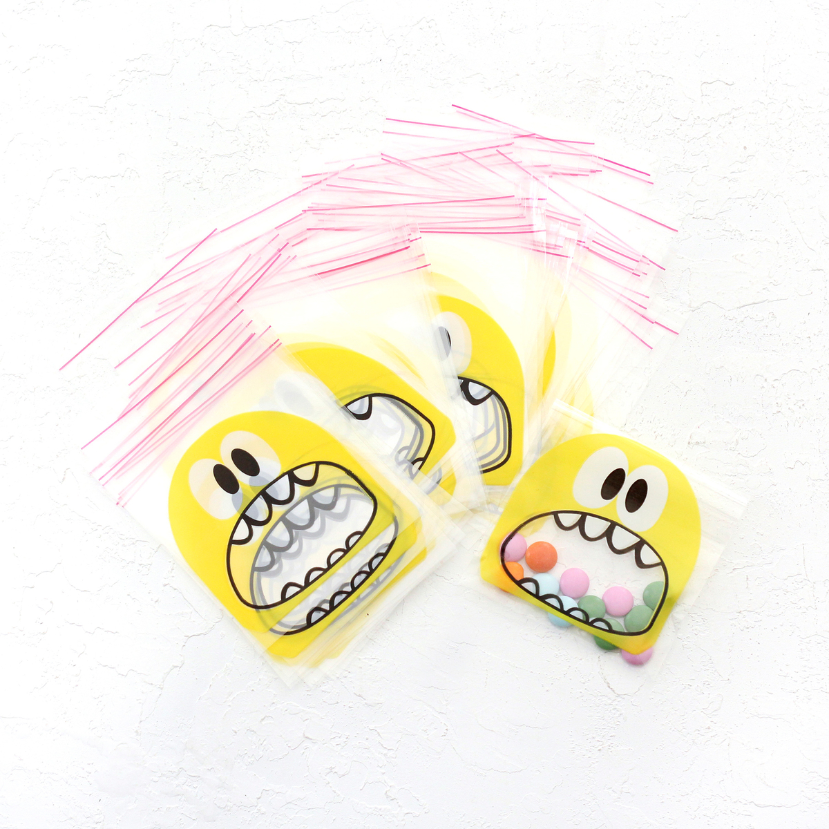 Sarı canavar desenli bantlı şeffaf poşet, 10x15 cm / 100 adet