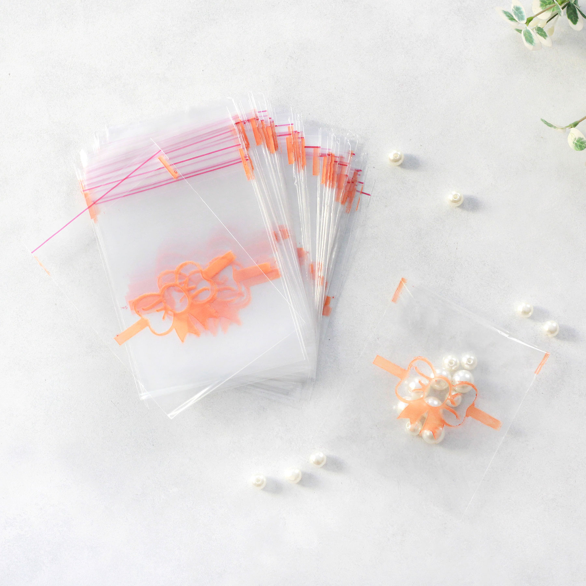Gelince Haber VerTuruncu fiyonk desenli bantlı şeffaf poşet, 10x15 cm / 100 adet