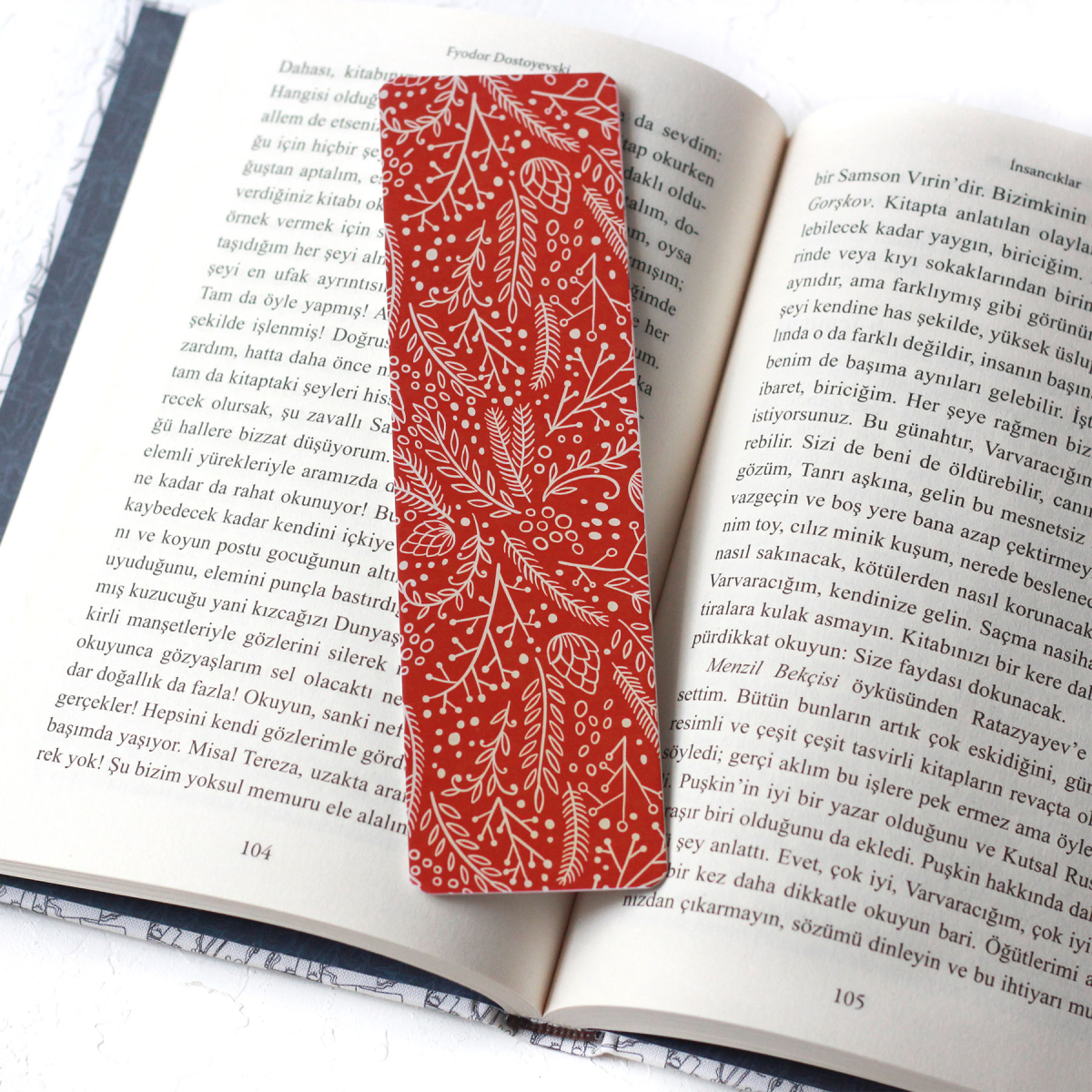 Yılbaşı kitap ayracı, kırmızı-yeşil yaprak / 2 adet