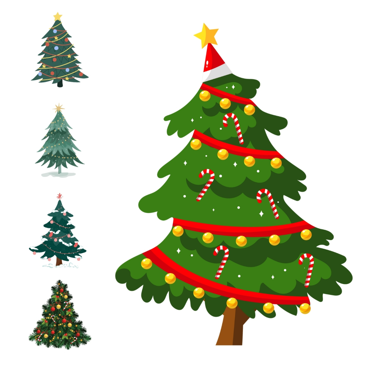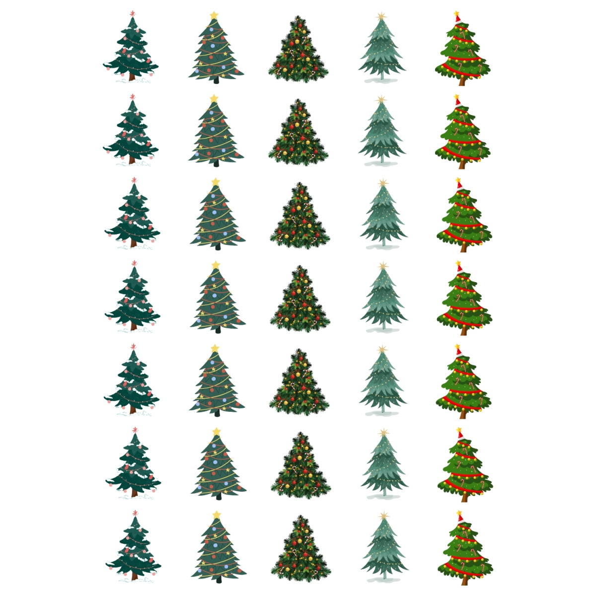 Yılbaşı sticker, çam ağaçları, 525 adet (15 sayfa)