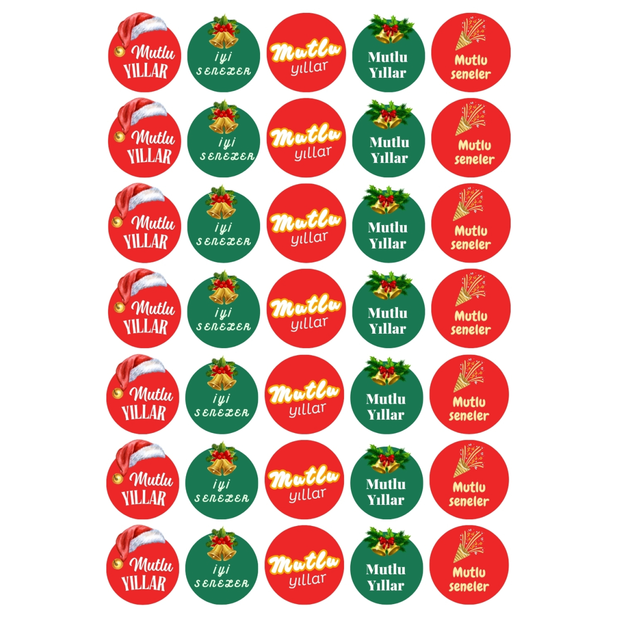 Yılbaşı sticker, karışık mutlu yıllar seti, 525 adet (15 sayfa)