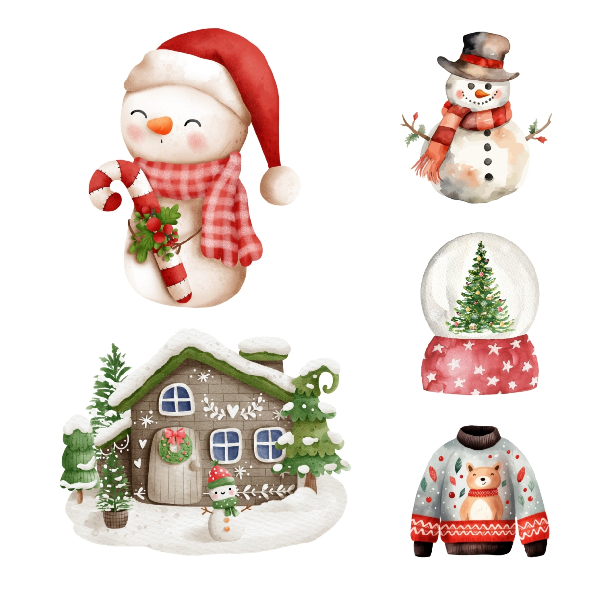 Yılbaşı sticker, vintage kardan adam ve figürler, 525 adet (15 sayfa)