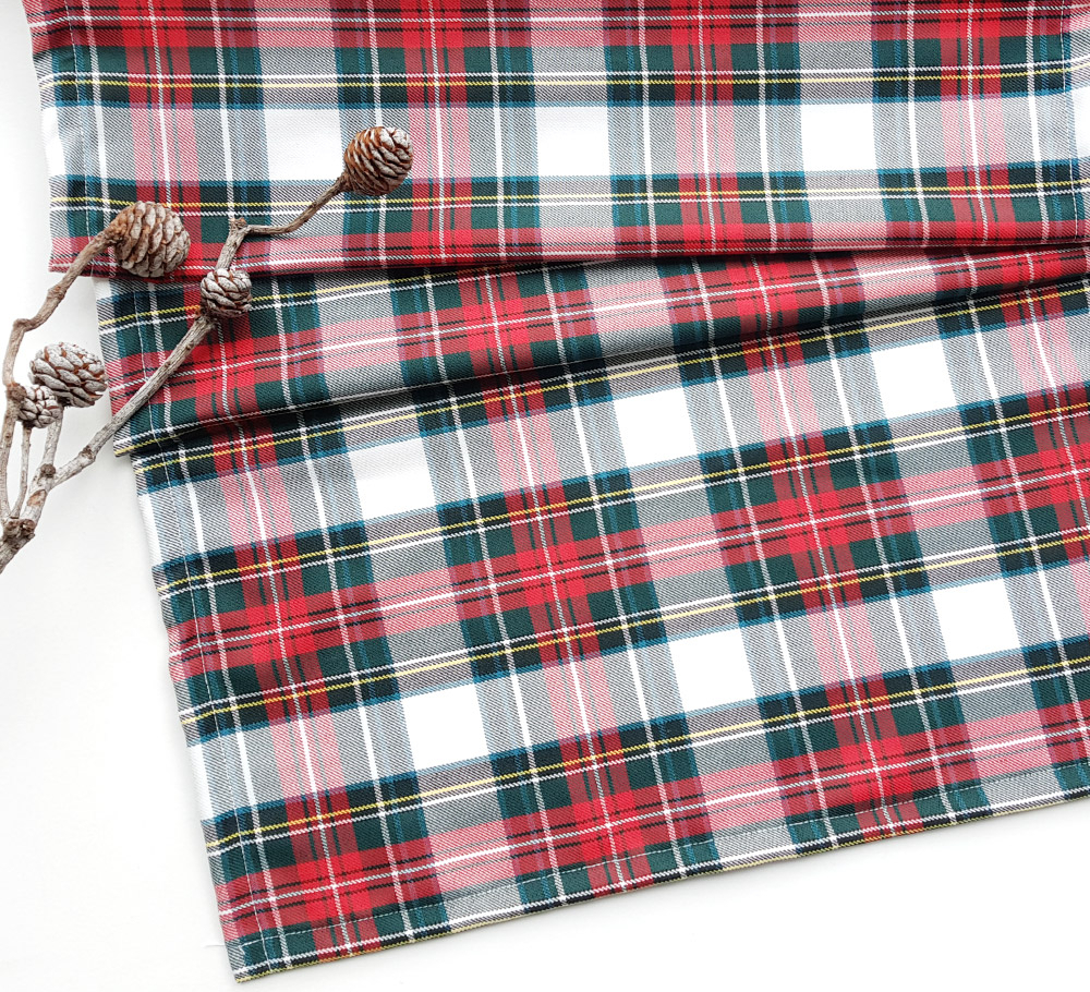 Ekose kırmızı kumaş runner. Ürün ölçüleri 45x145 cm'dir. Bu örtüyü masa veya mobilyalarınızın üzerinde; özellikle yeni yıl organizasyonlarında şömine üzerinde ya da farklı alanlarda dekoratif olarak kullanabilirsiniz.
