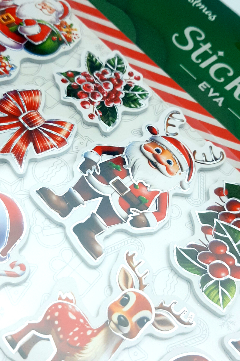 Yılbaşı yeşil kabartmalı eva sticker, 21x25 cm / Noel Baba ve Geyik